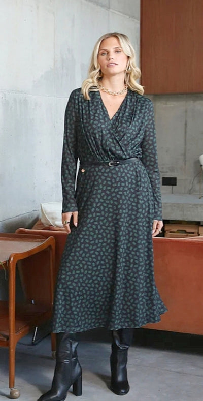 Rant & Rave - Ladies long sleeve Henrettia midi dress green/black