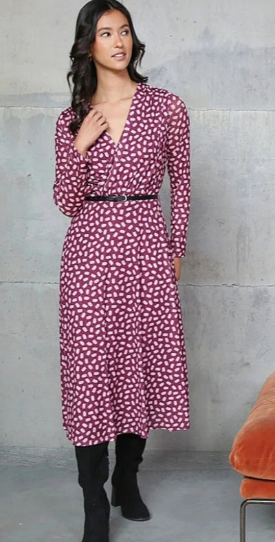 Rant & Rave -Ladies long sleeve Henrettia midi dress - Magenta
