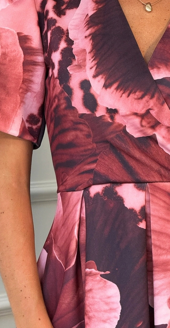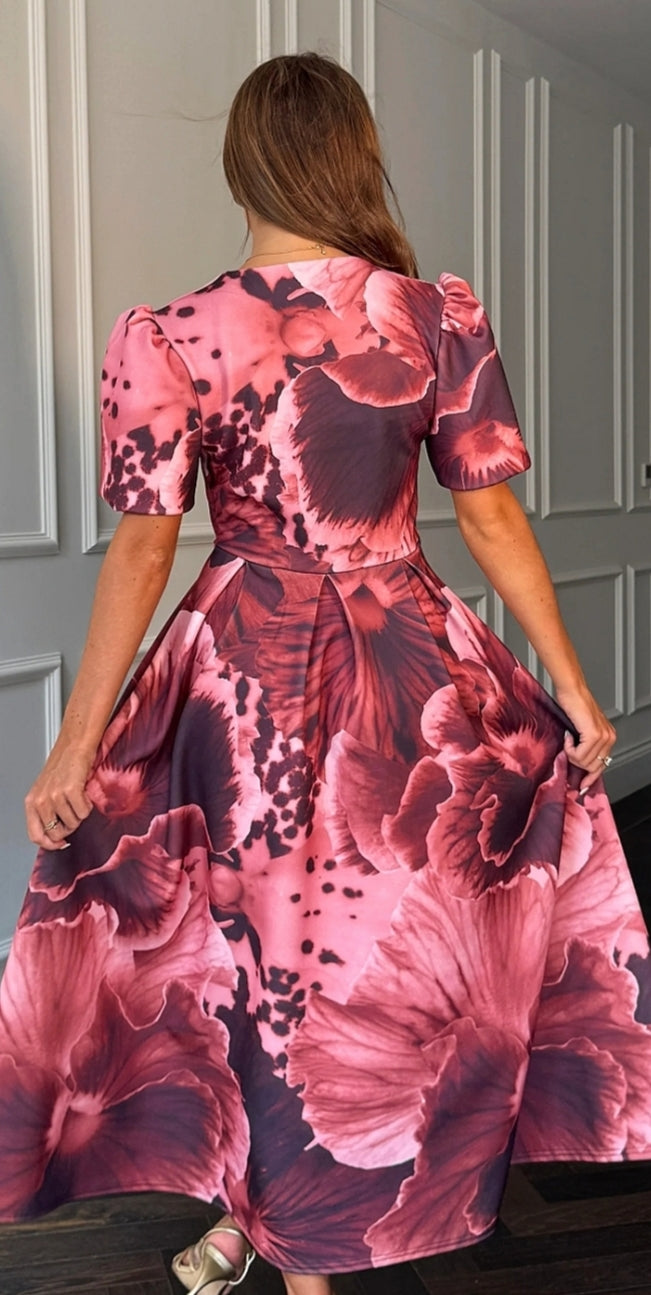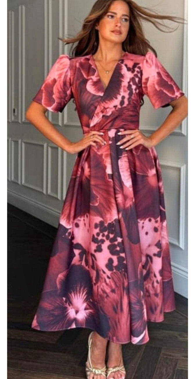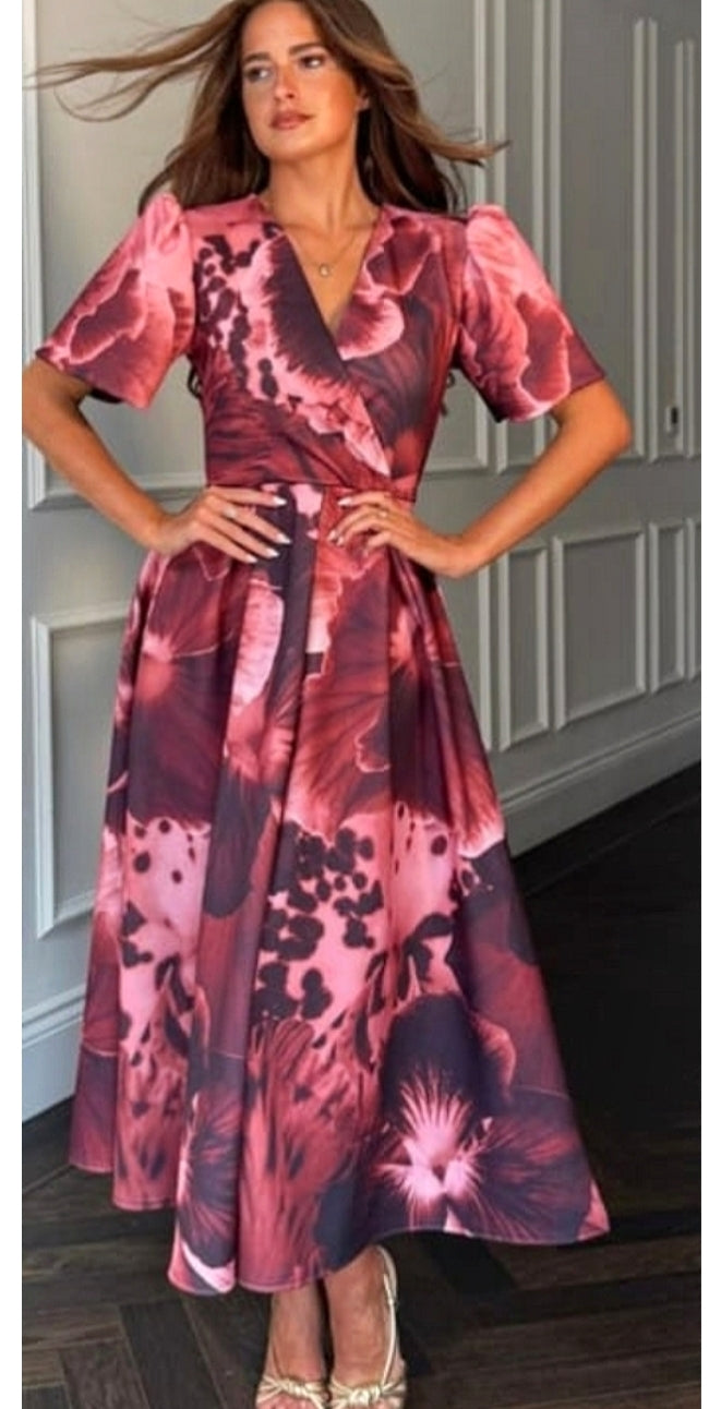 Ladies Elegant V.neck print midi dress