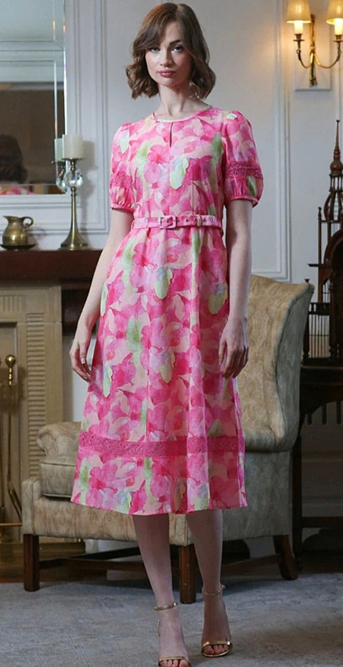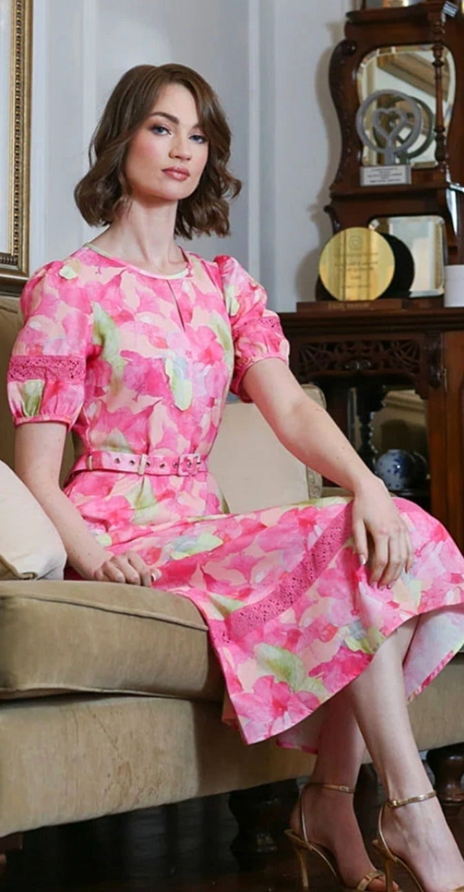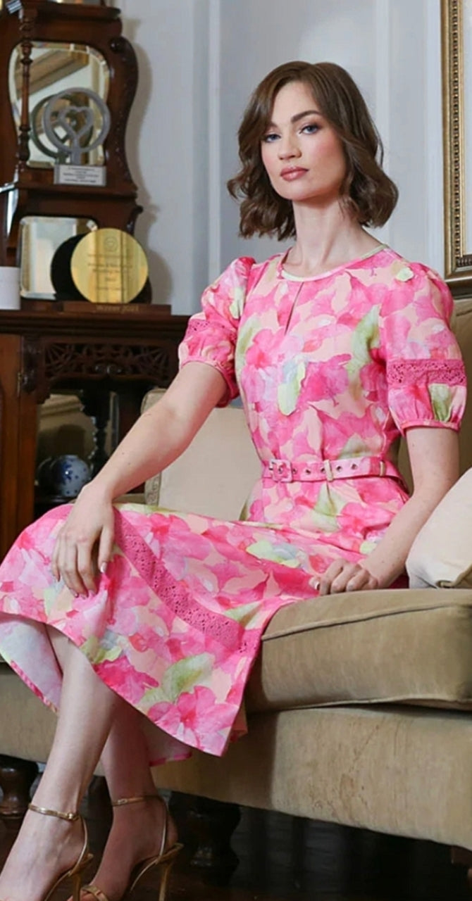 Rant & Rave - Ladies Elegant floral print Eden dress - pink