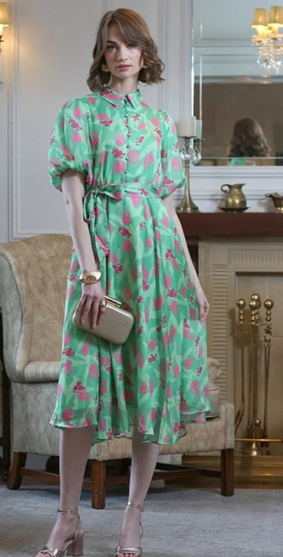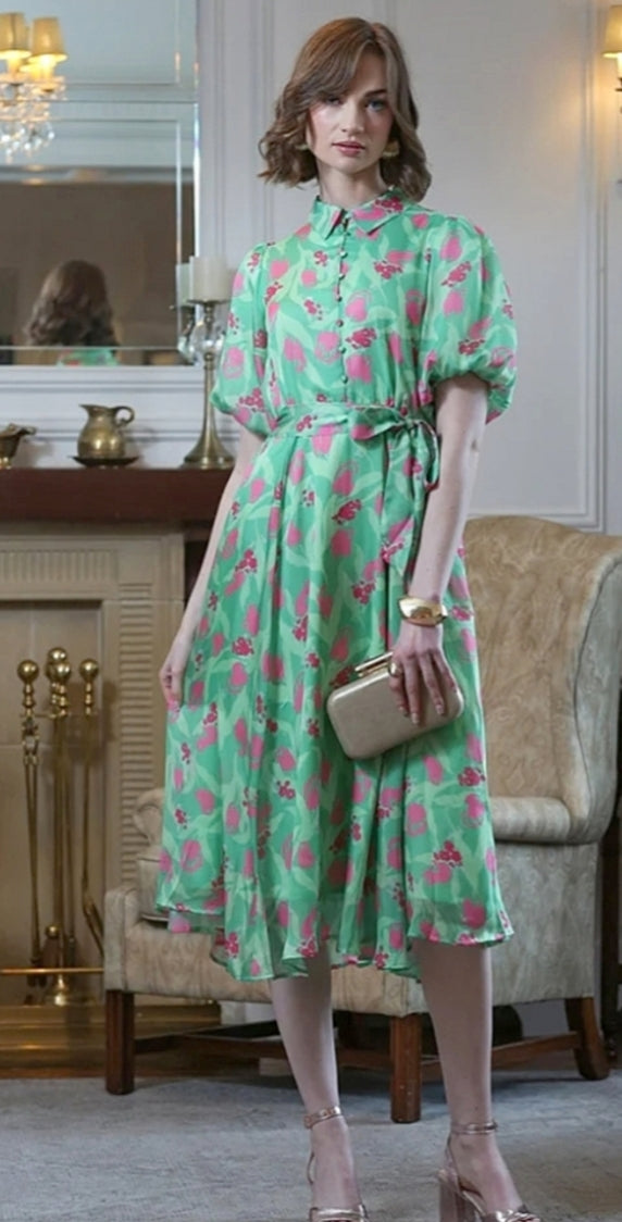 Ladies Elegant Floral print lda dress by Rant & Rave in green