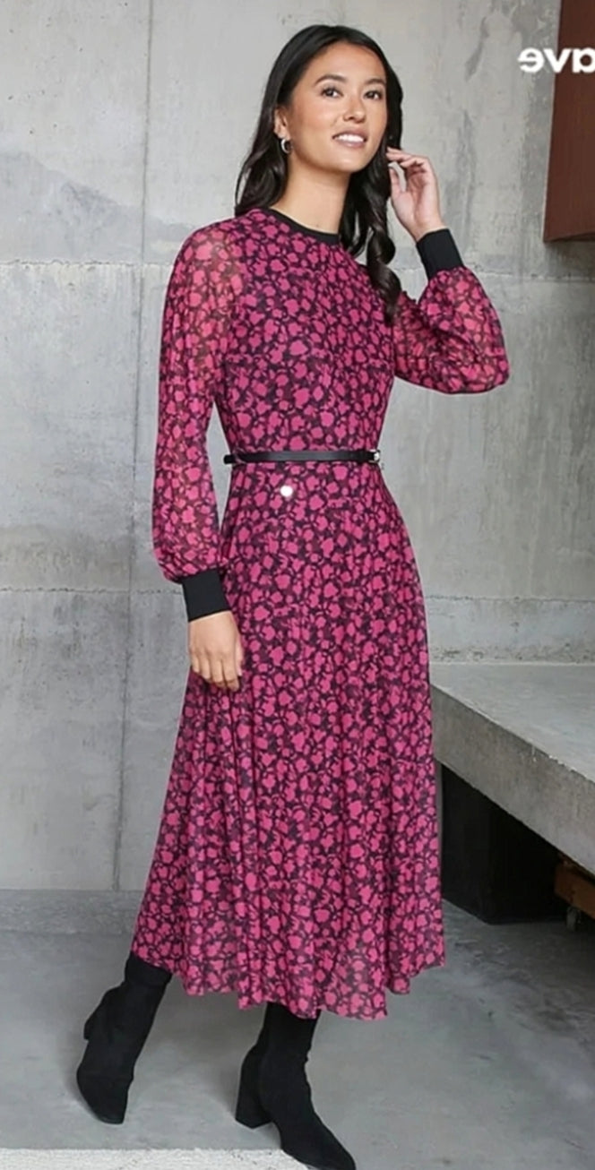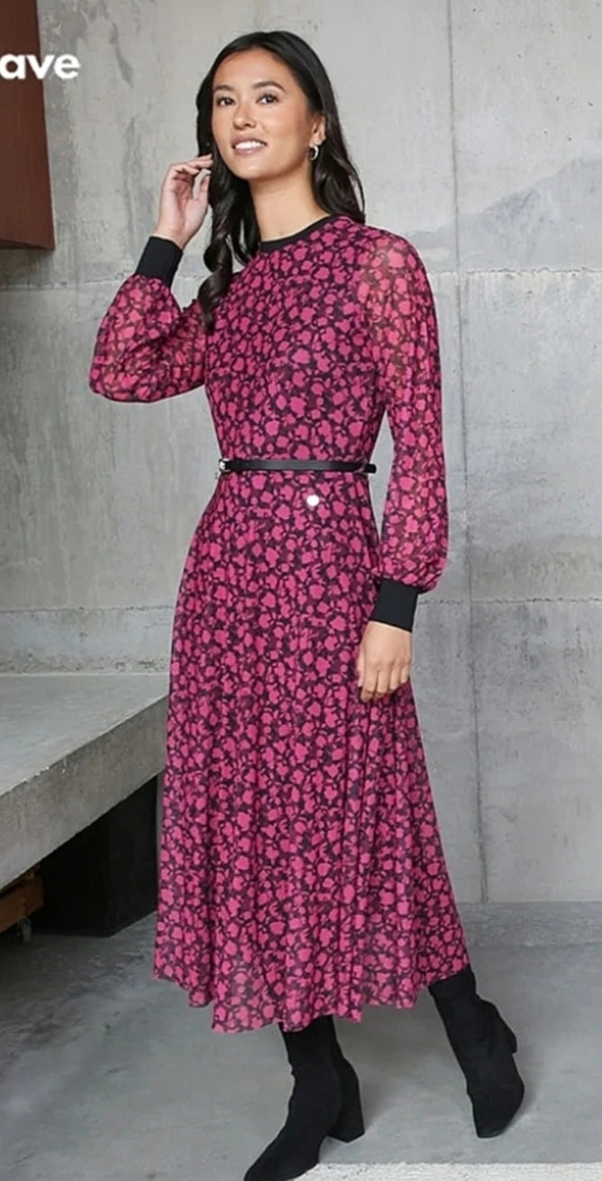 Ladies long sleeve belted Gwyneth midi dress by Rant & Rave in pink