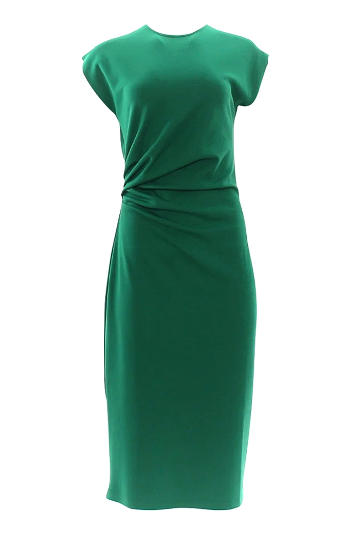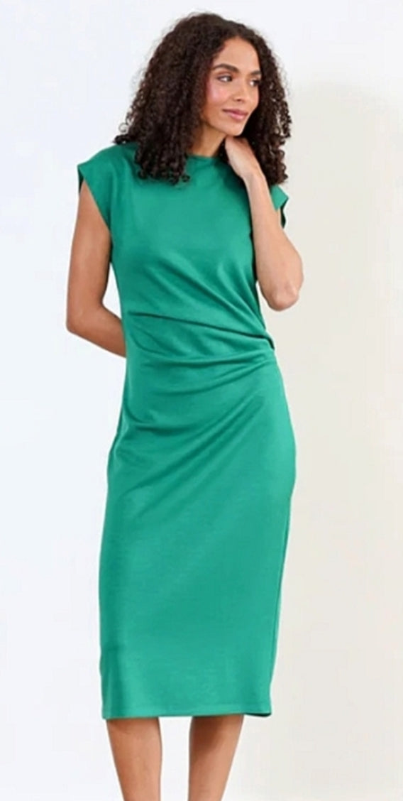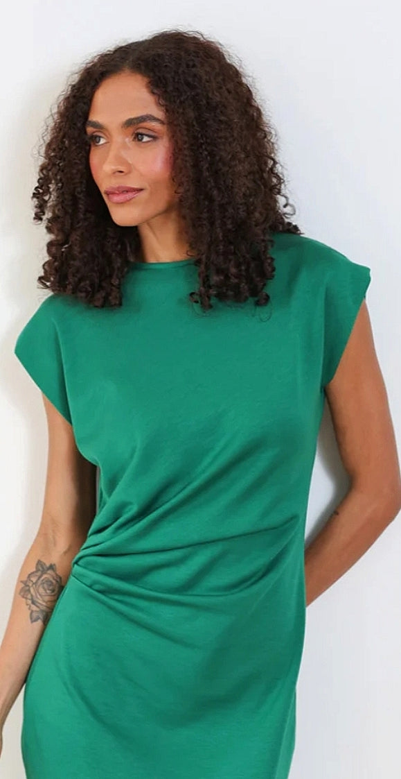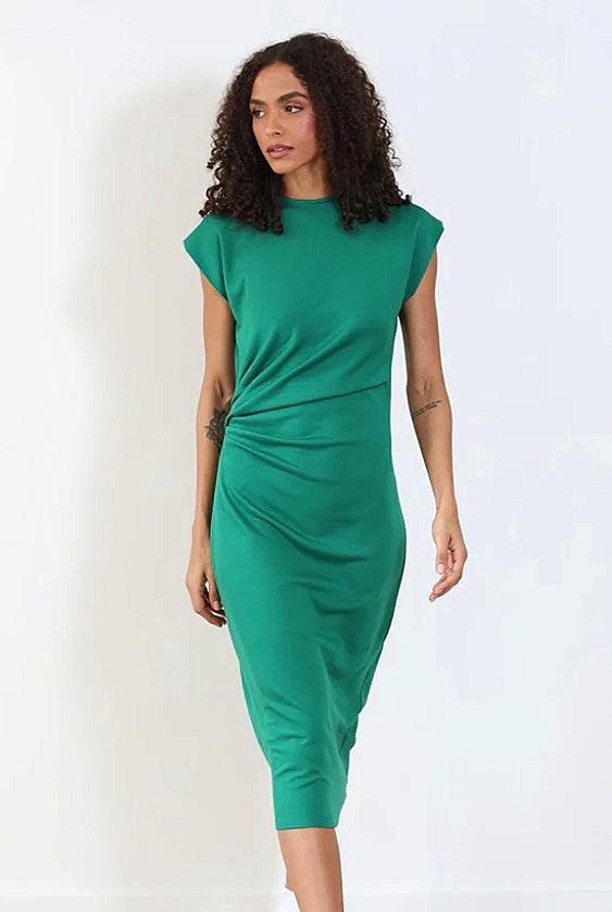 Ladies Rouched sleeveless Anya midi dress by Rant & Rave in green