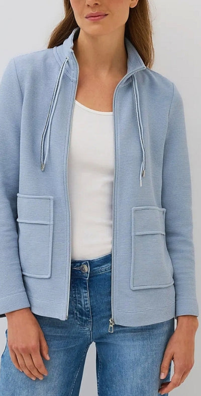 CECIL -Ladies zip front drawstring Cardigan - blue