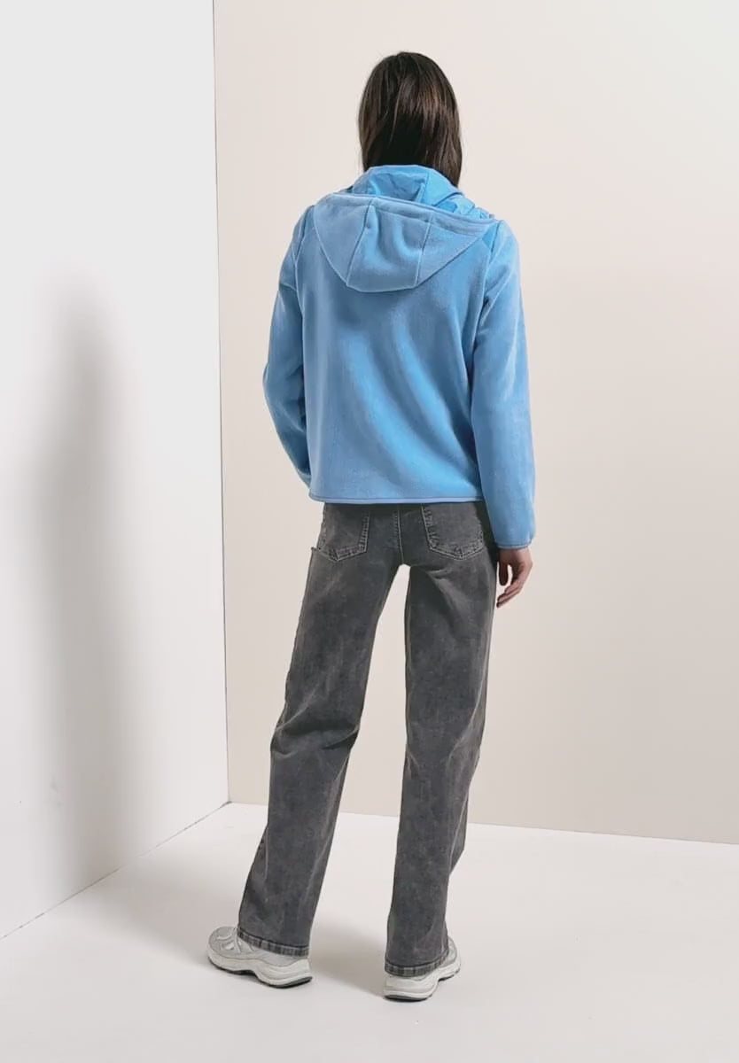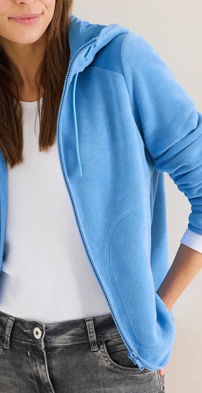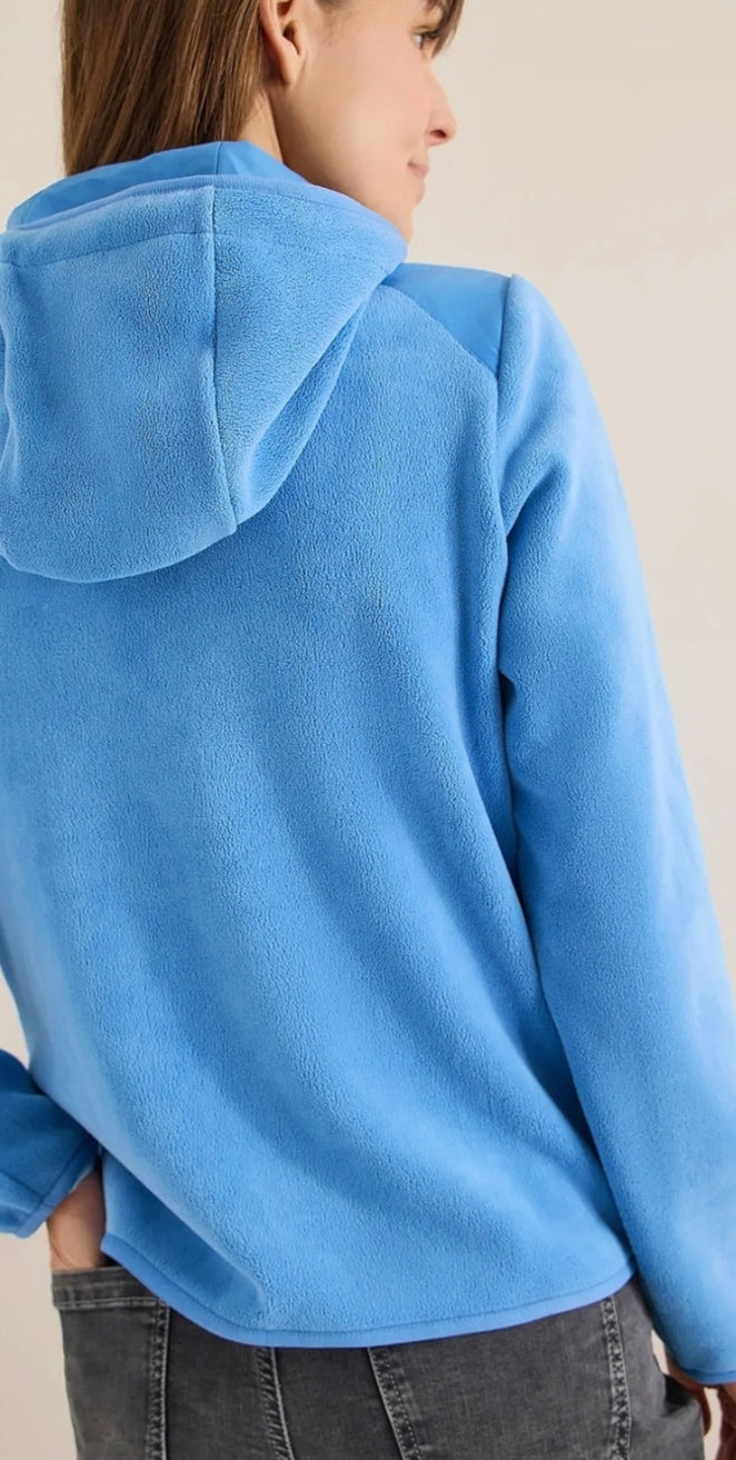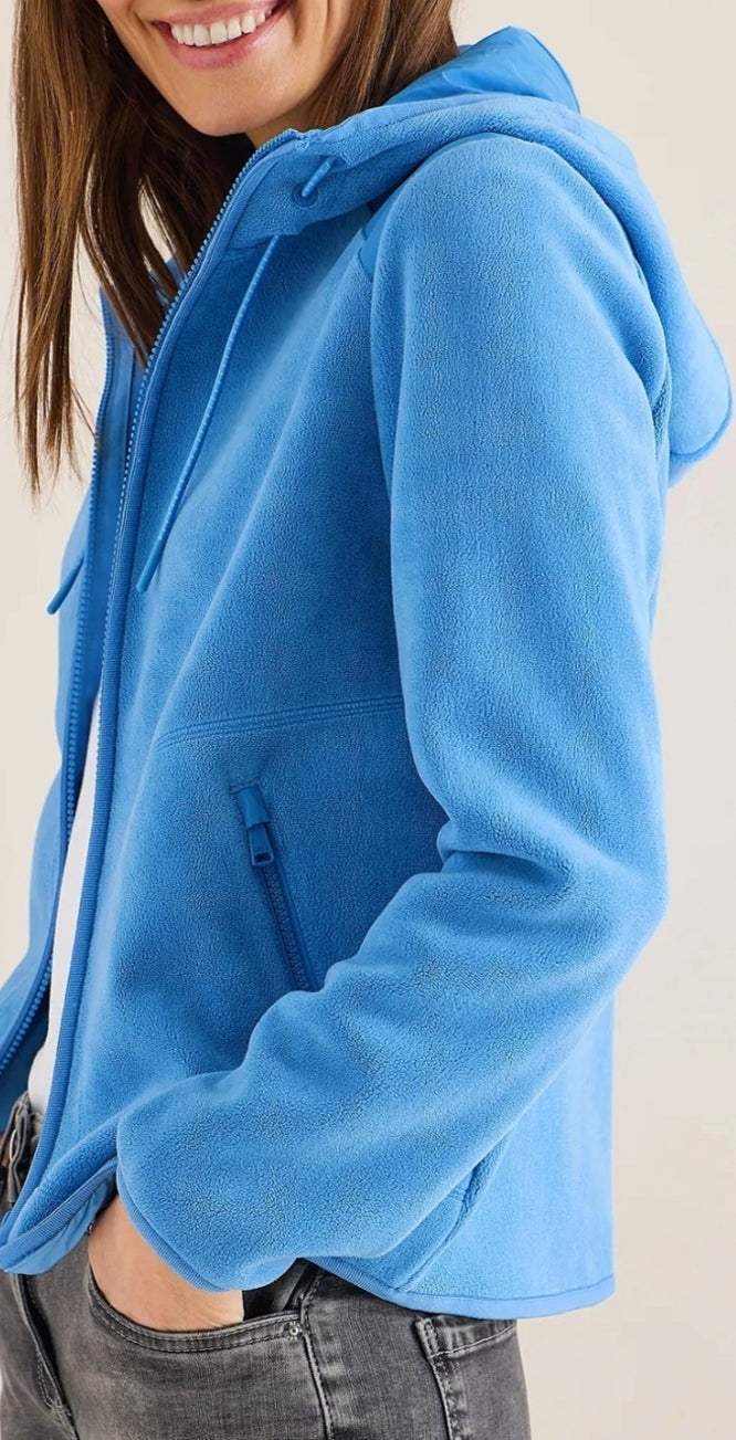 Ladies hooded fleece jacket in blue by CECIL