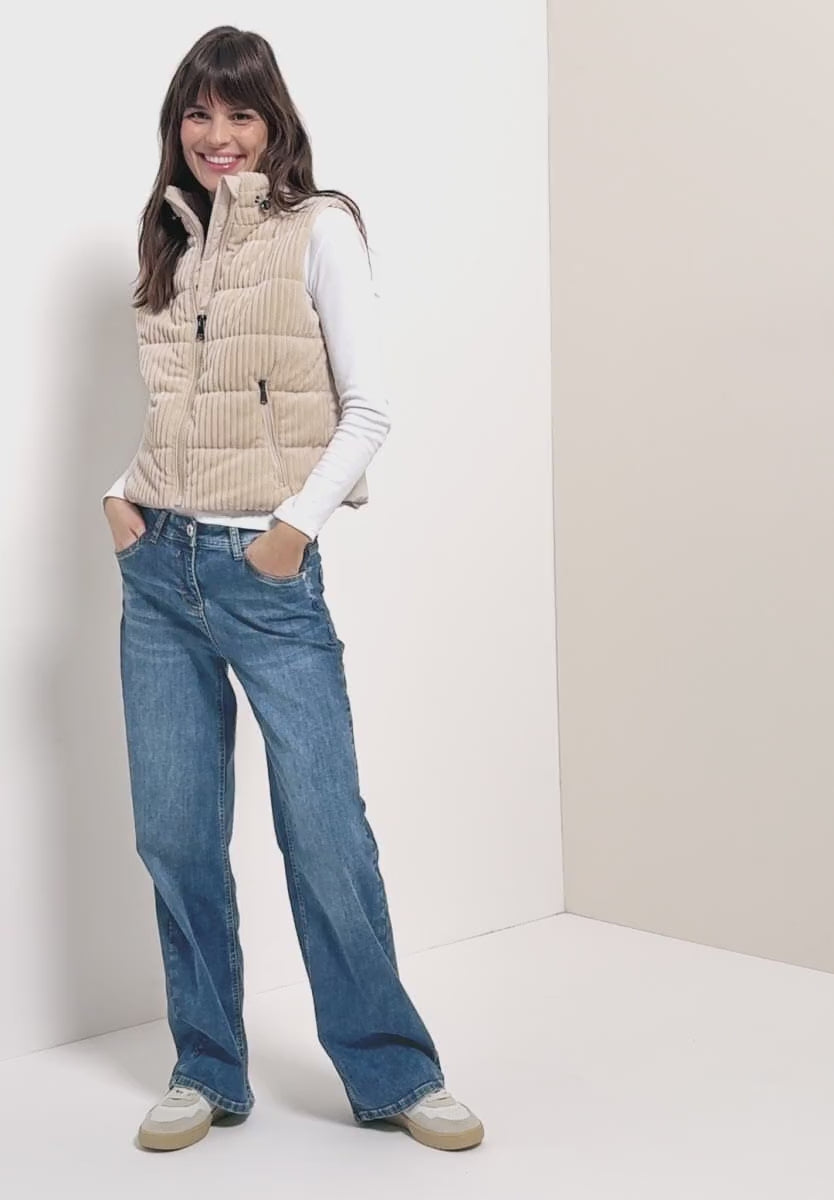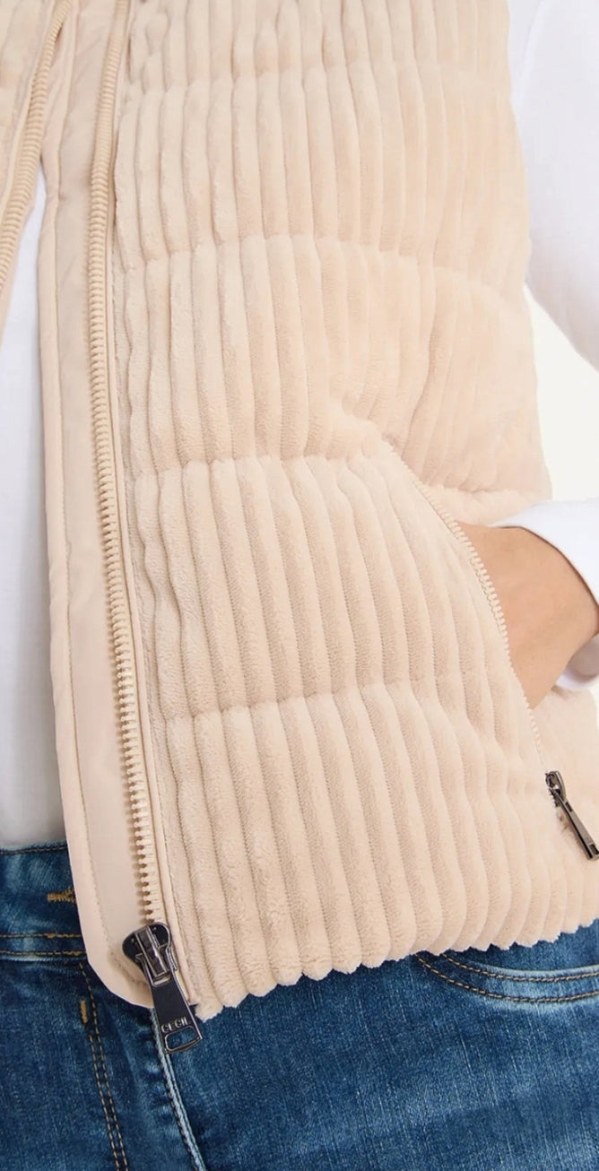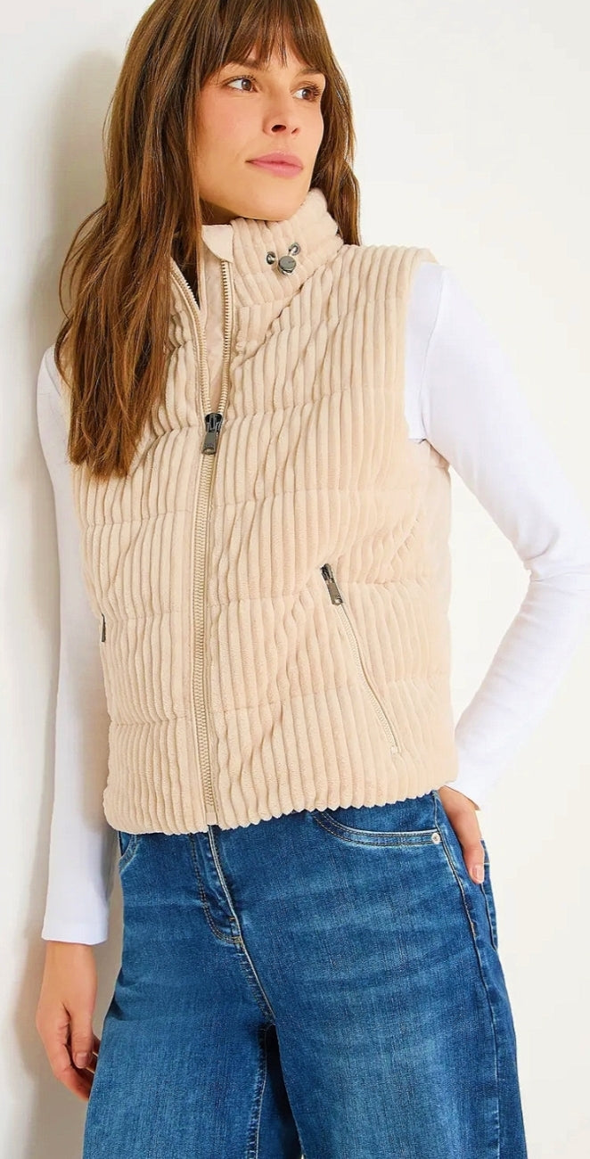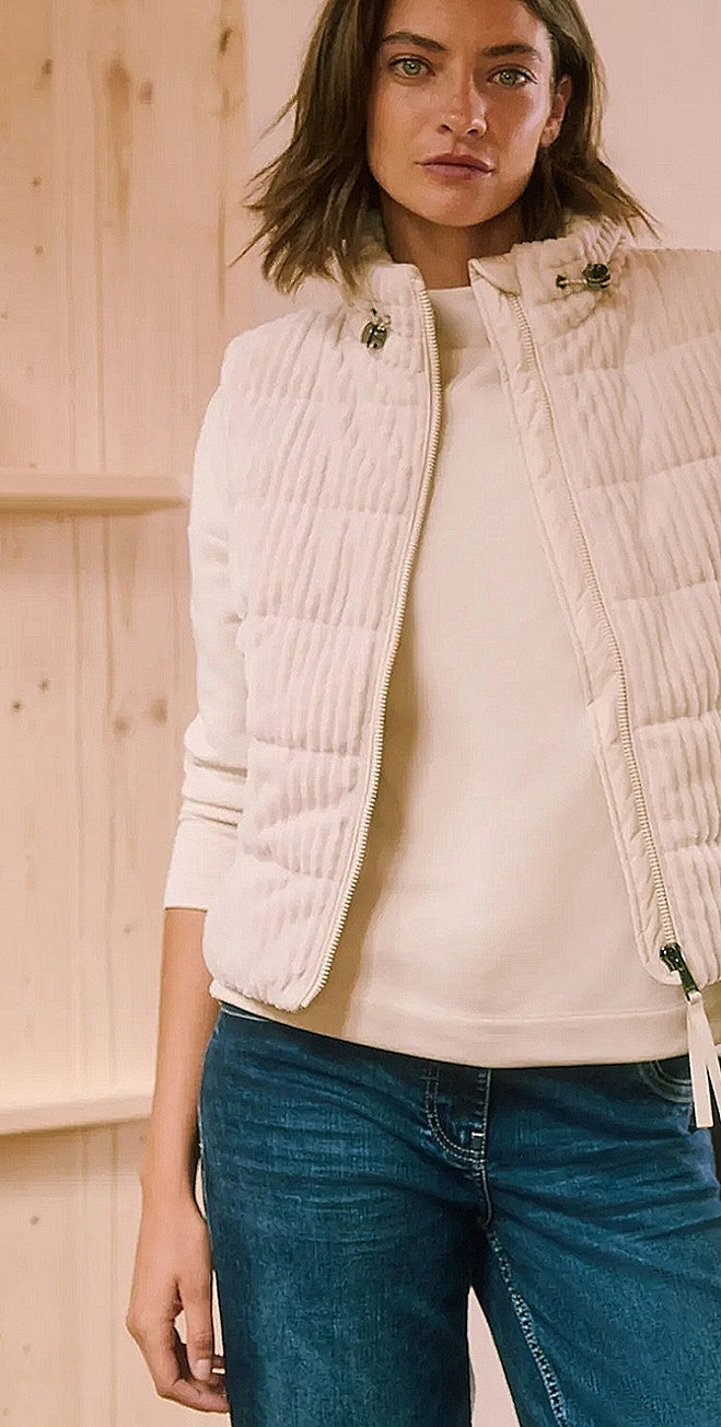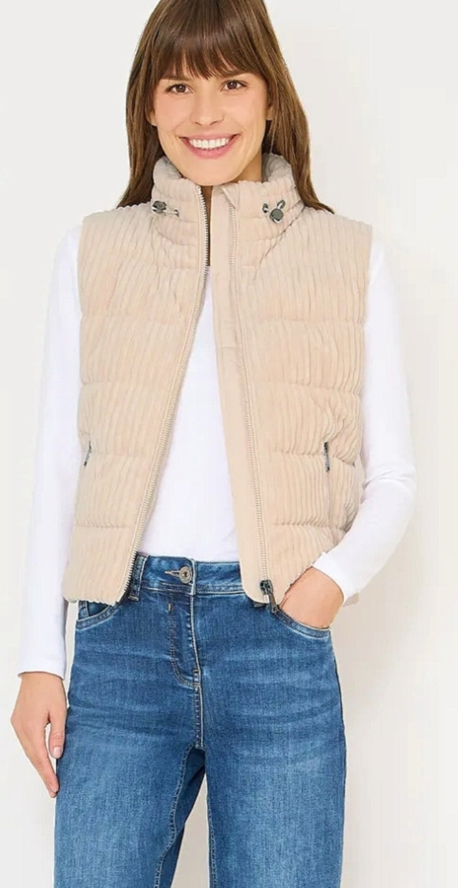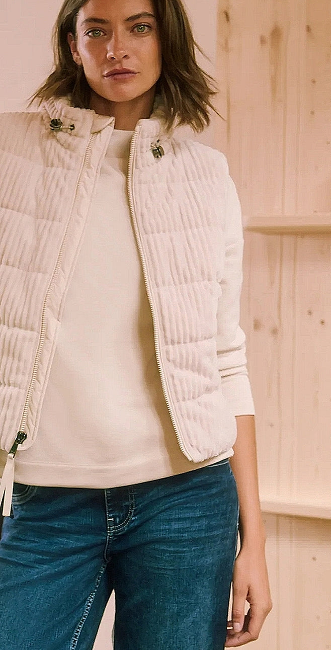 Ladies Matmix zip fastening cord gilet in cream by CECIL
