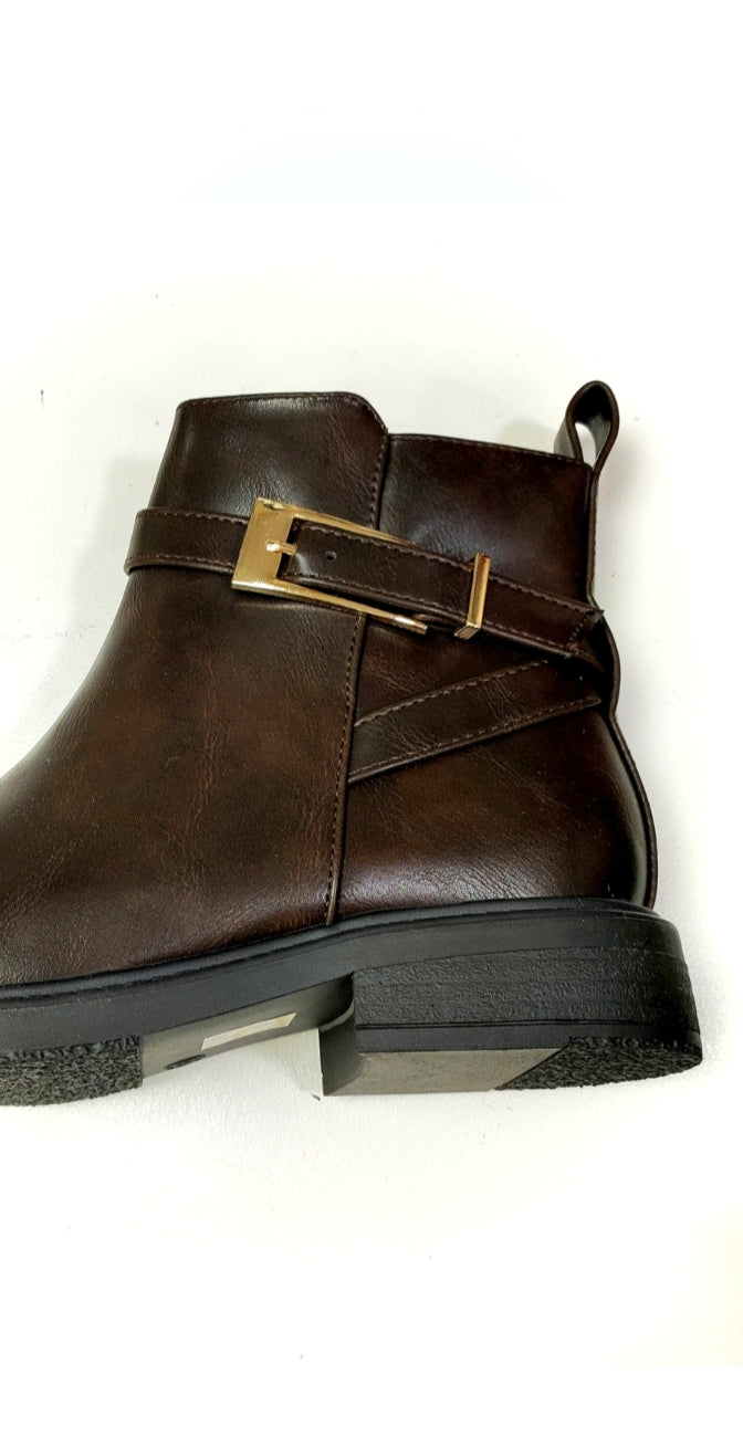 Ladies brown buckle ankle boot