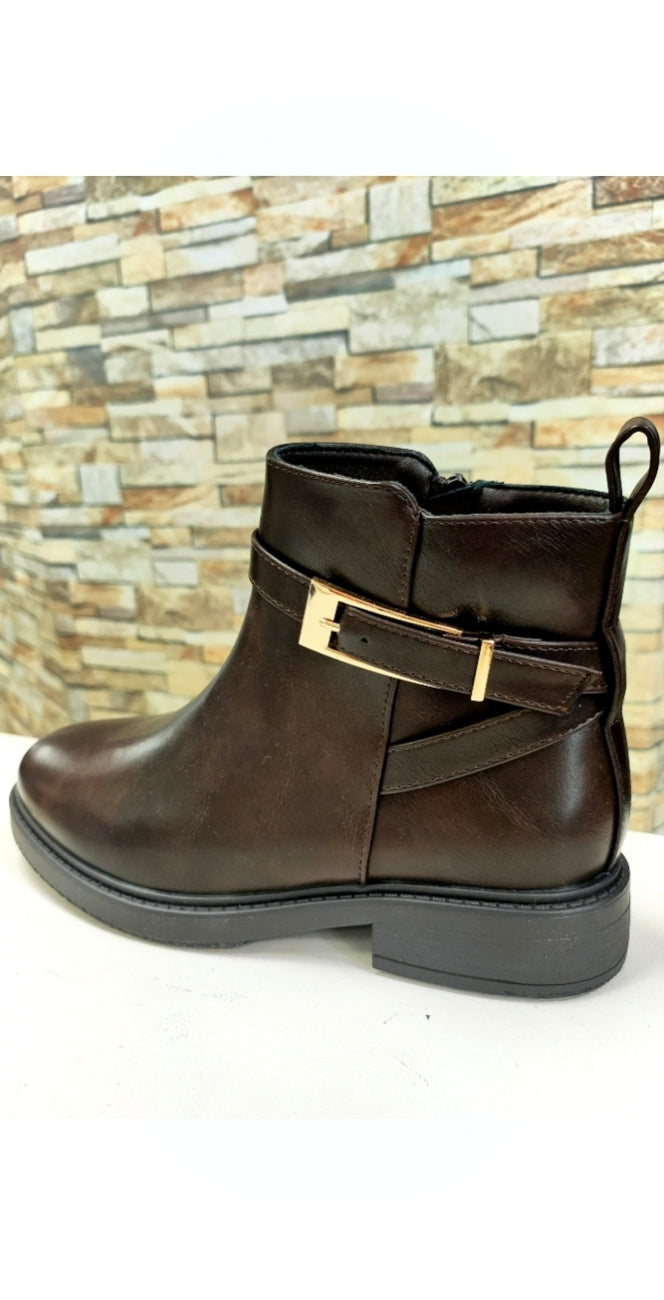 Ladies brown buckle ankle boots