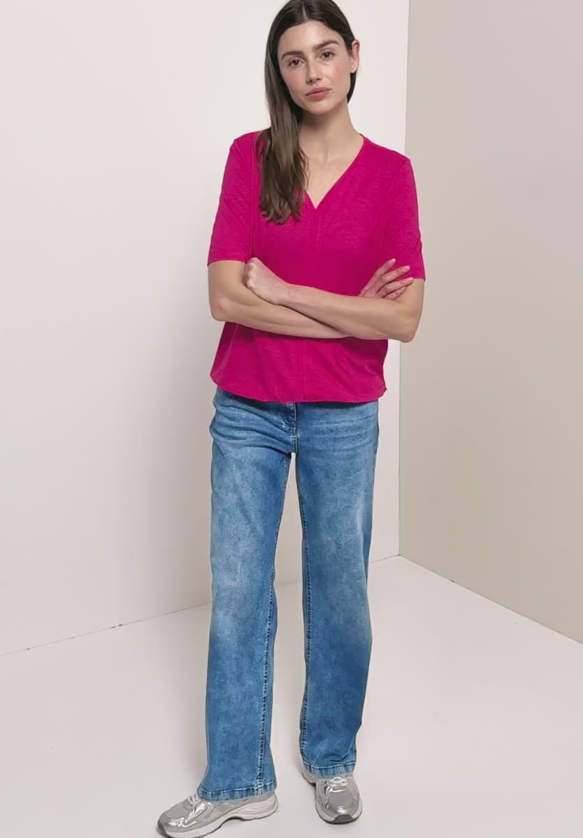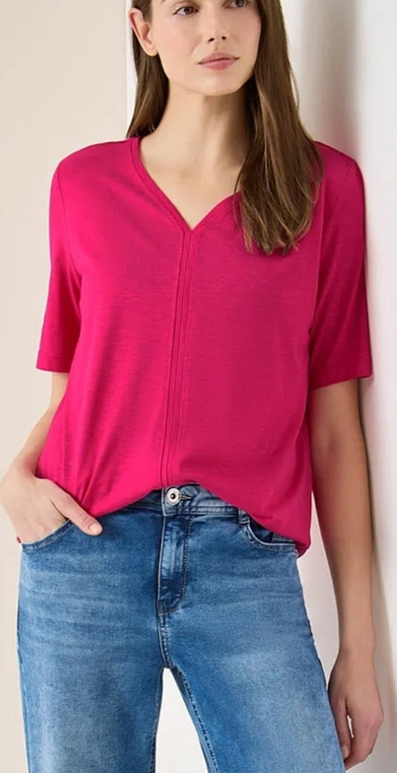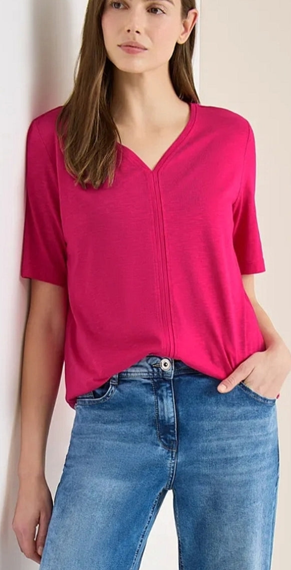 Ladies basic V.neck top in pink by CECIL