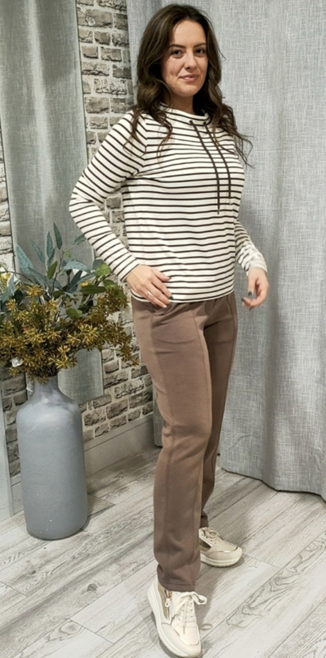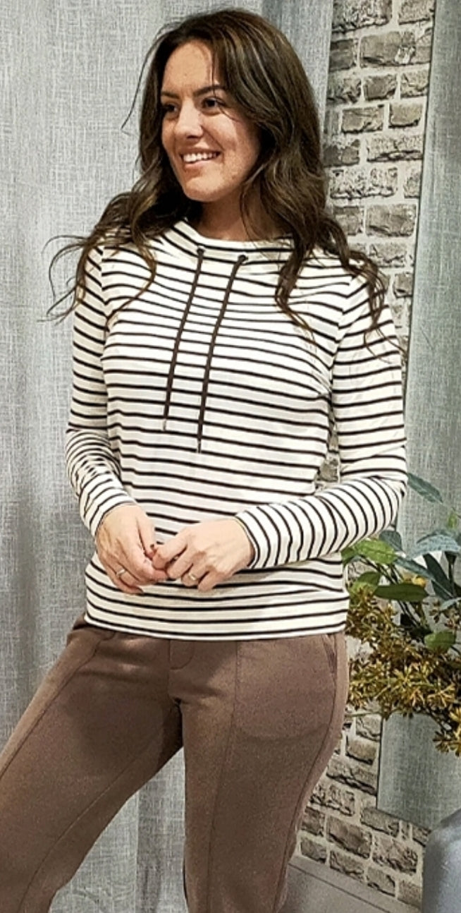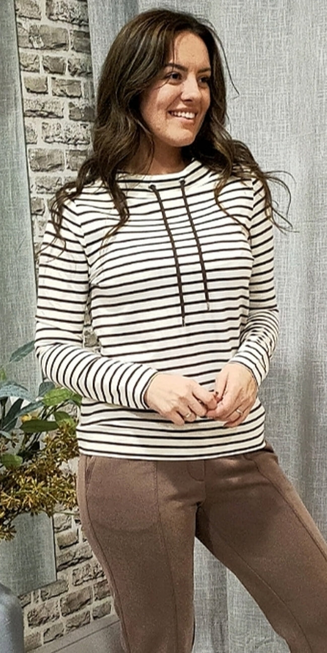Ladies funnel neck pin striped top in beige/ white by CECIL