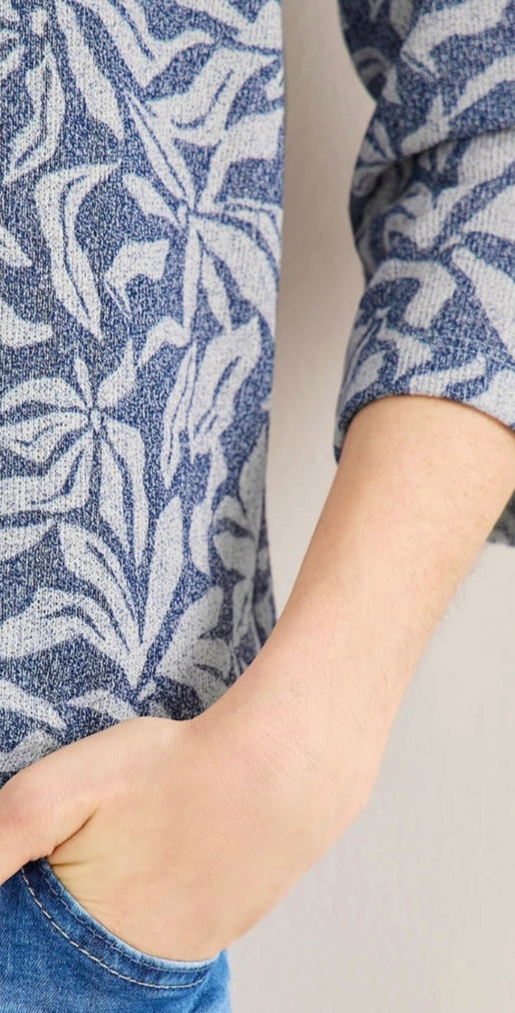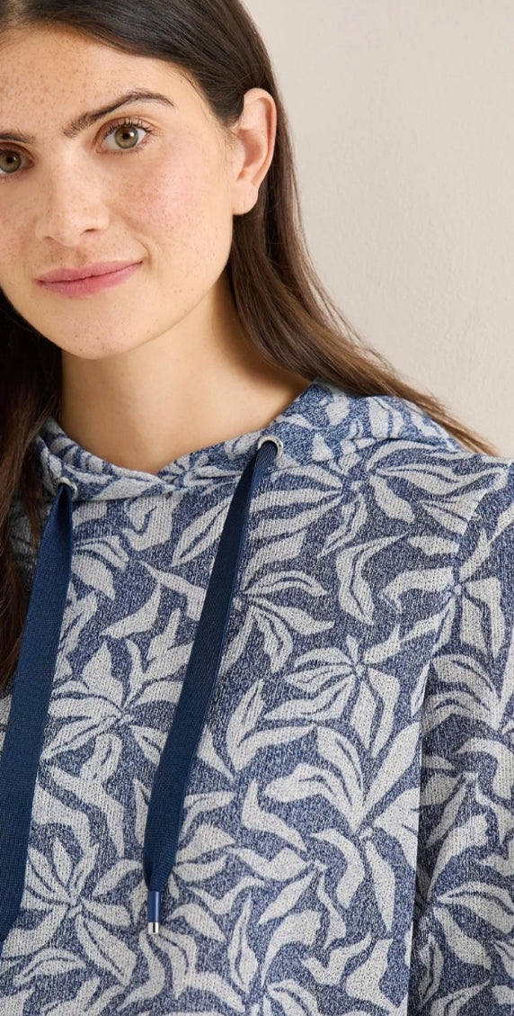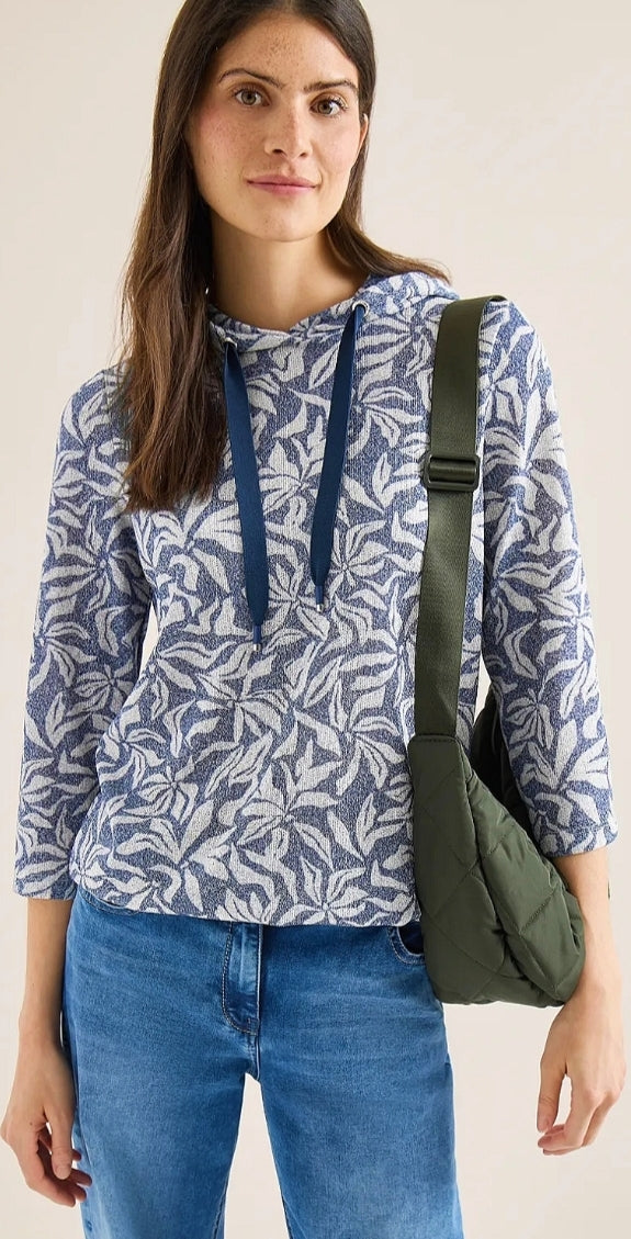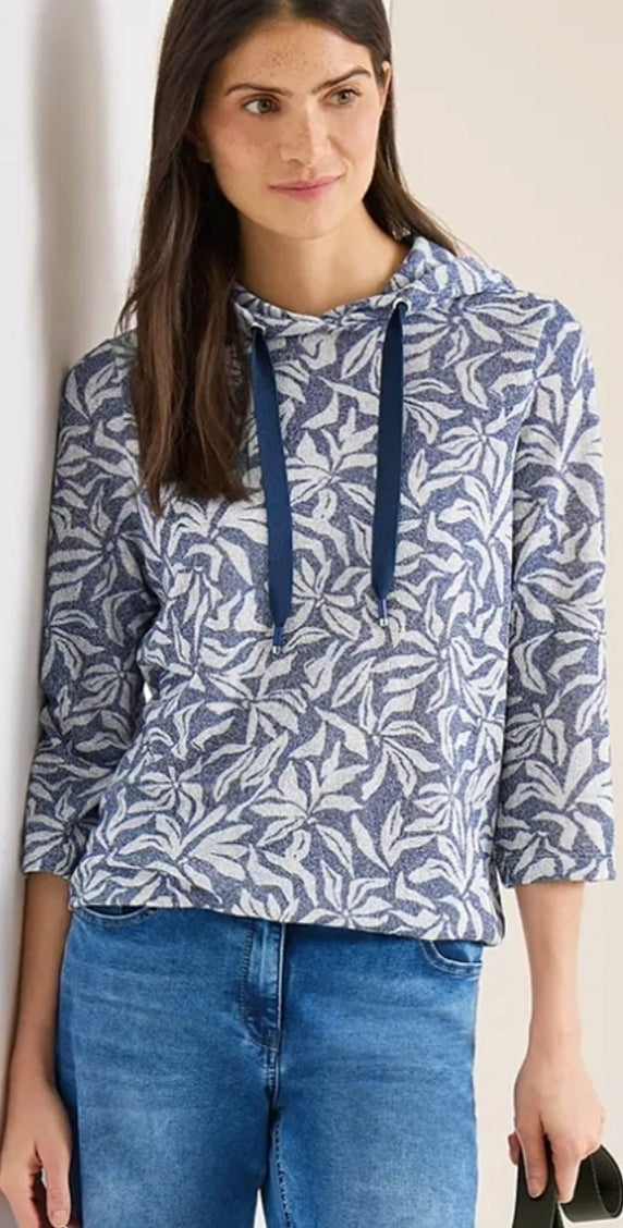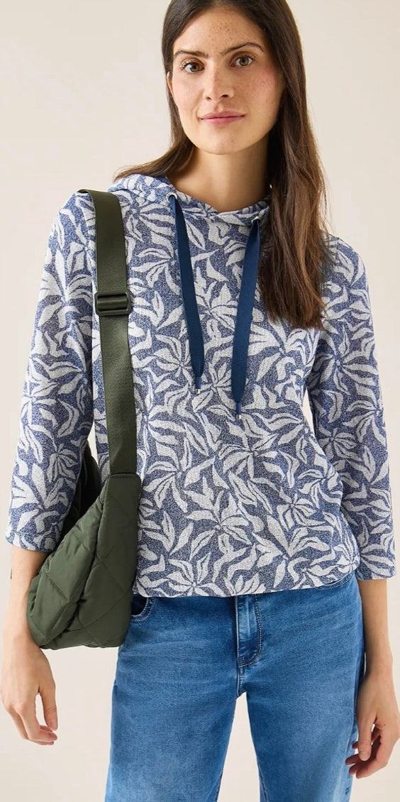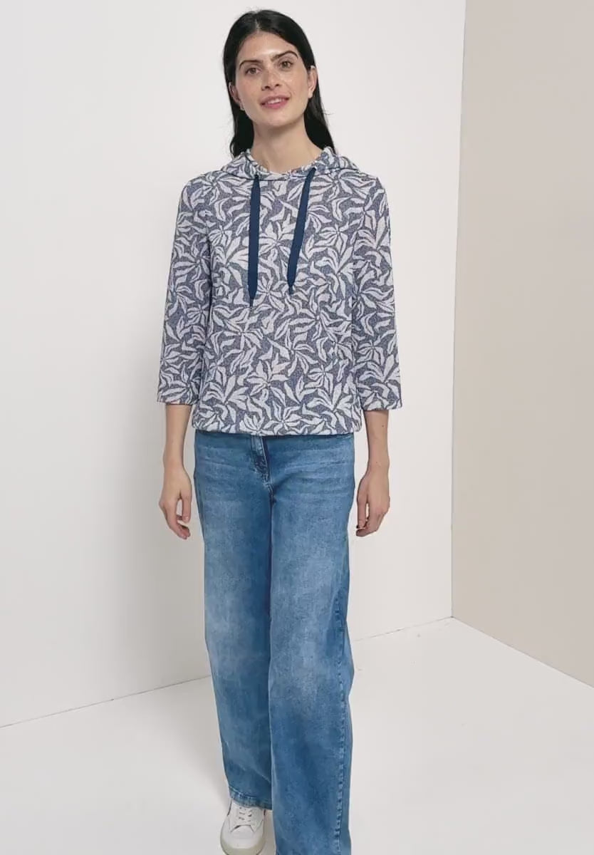 Ladies printed hooded top in navy by CECIL