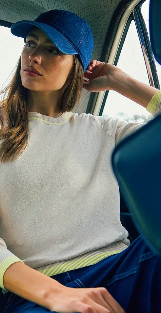 Ladies round neck with kickstripes sweater by CECIL