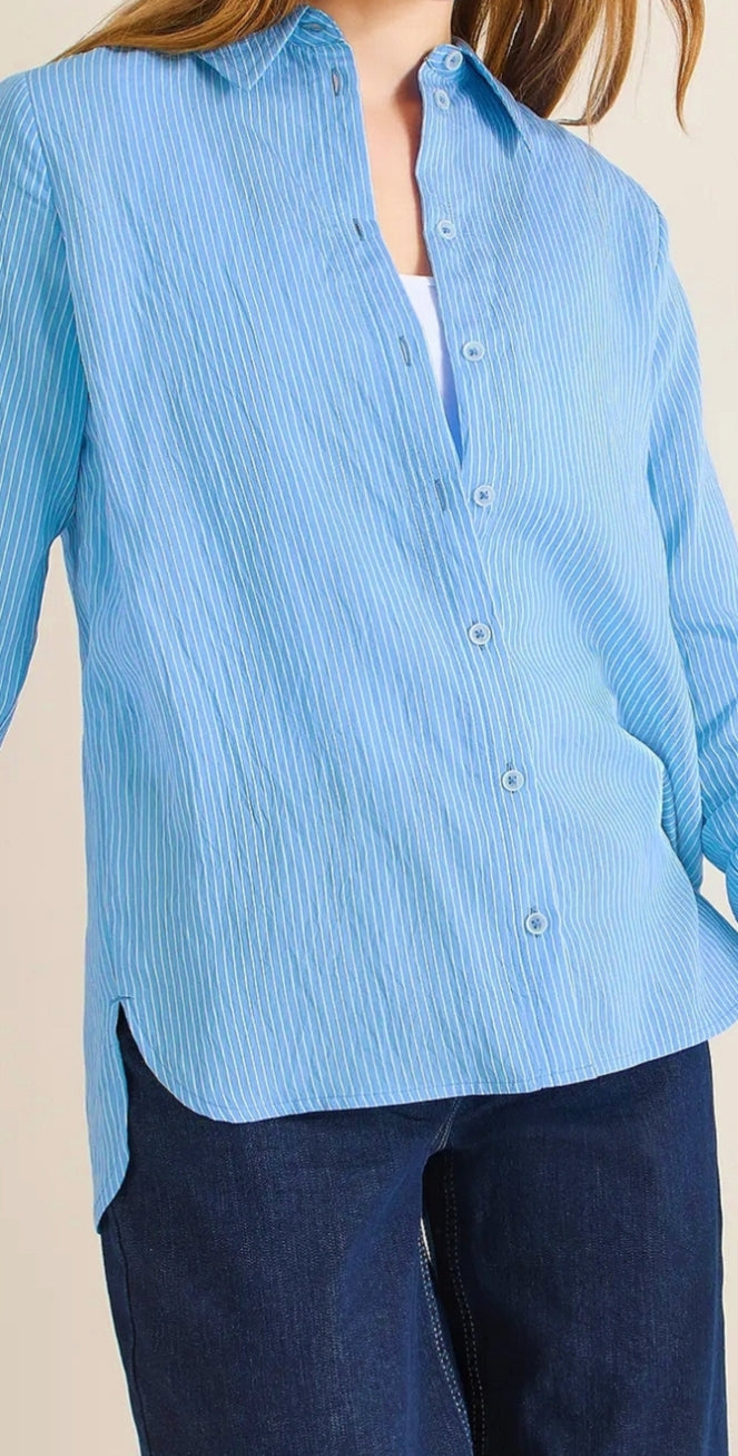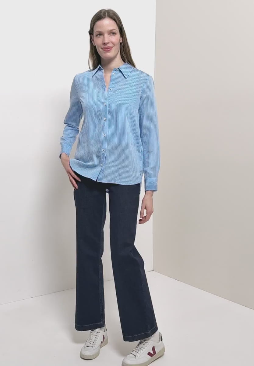 Ladies seersucker pinstriped shirt in blue by CECIL