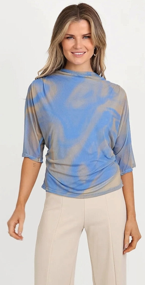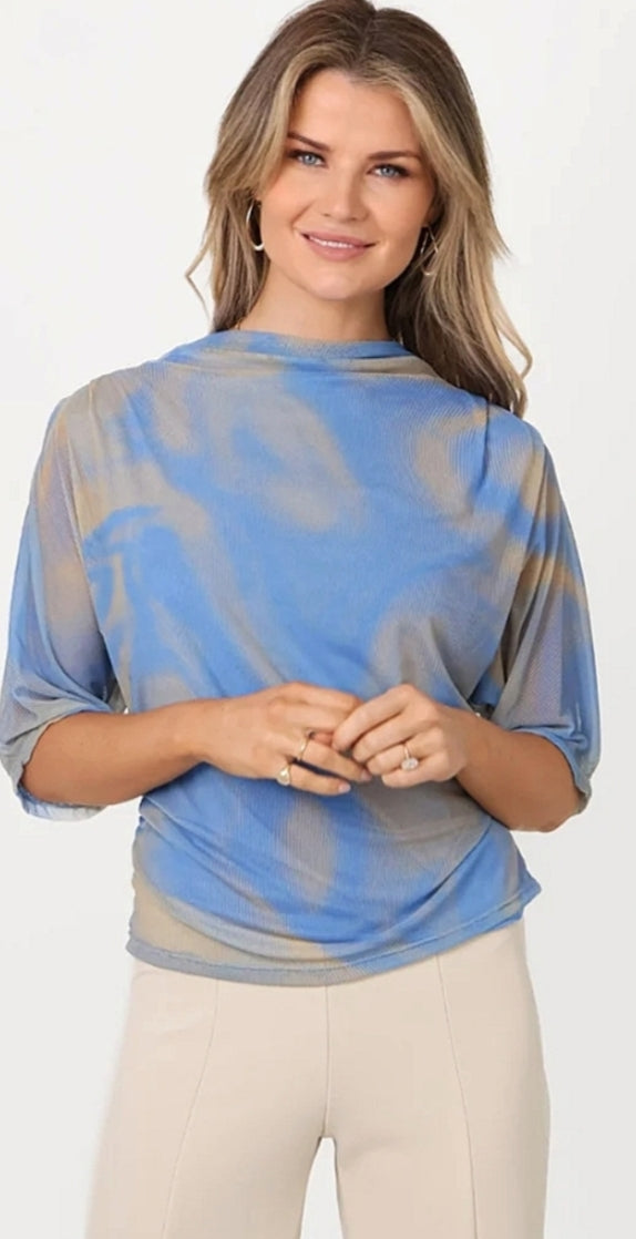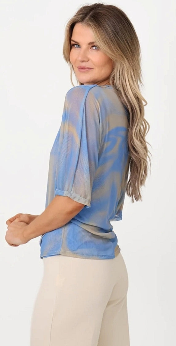 Kate & Pippa - Ladies lightweight Chiffon printed top -blue