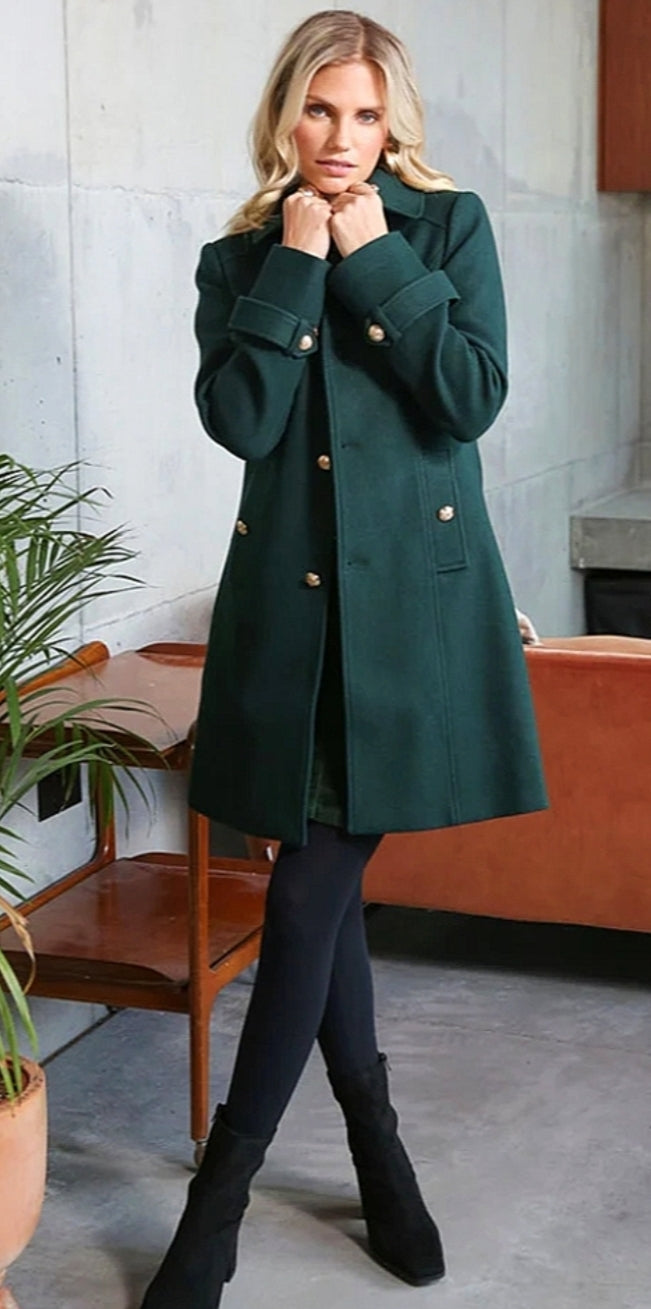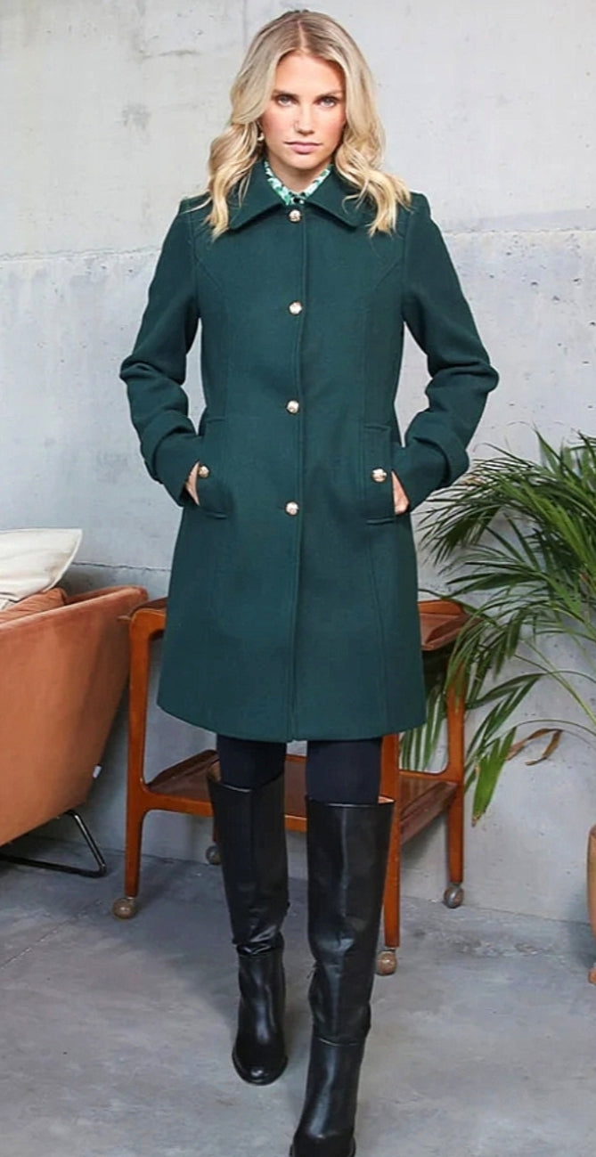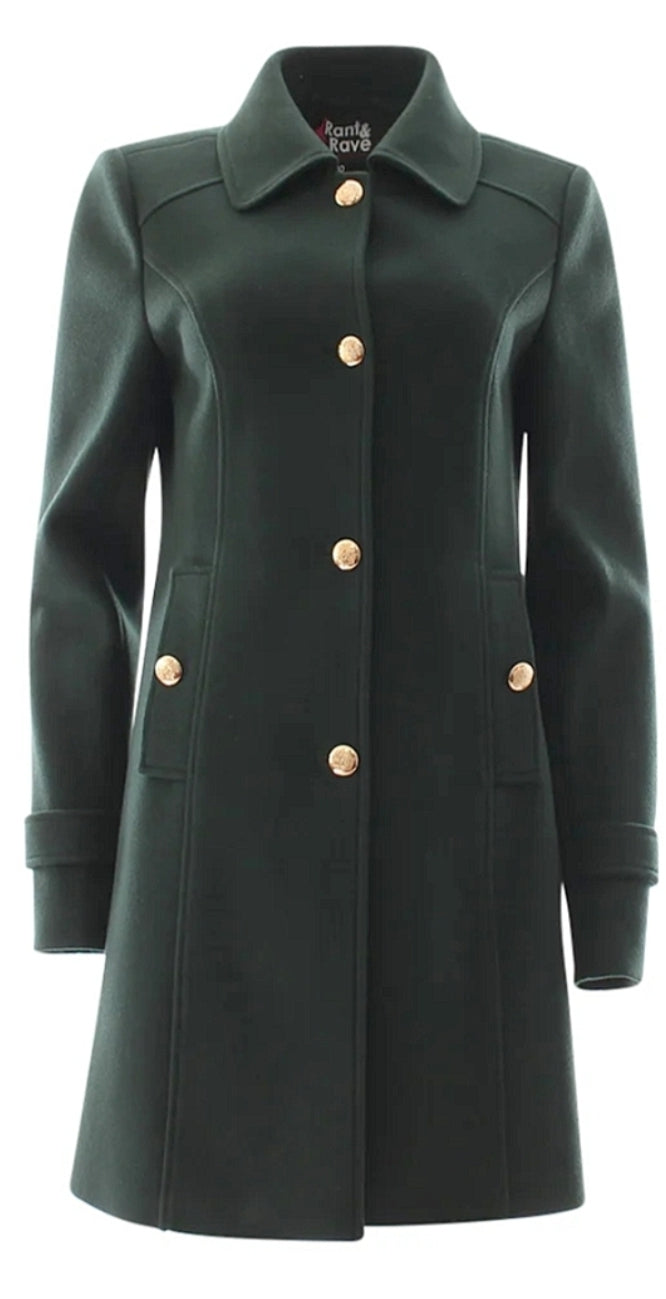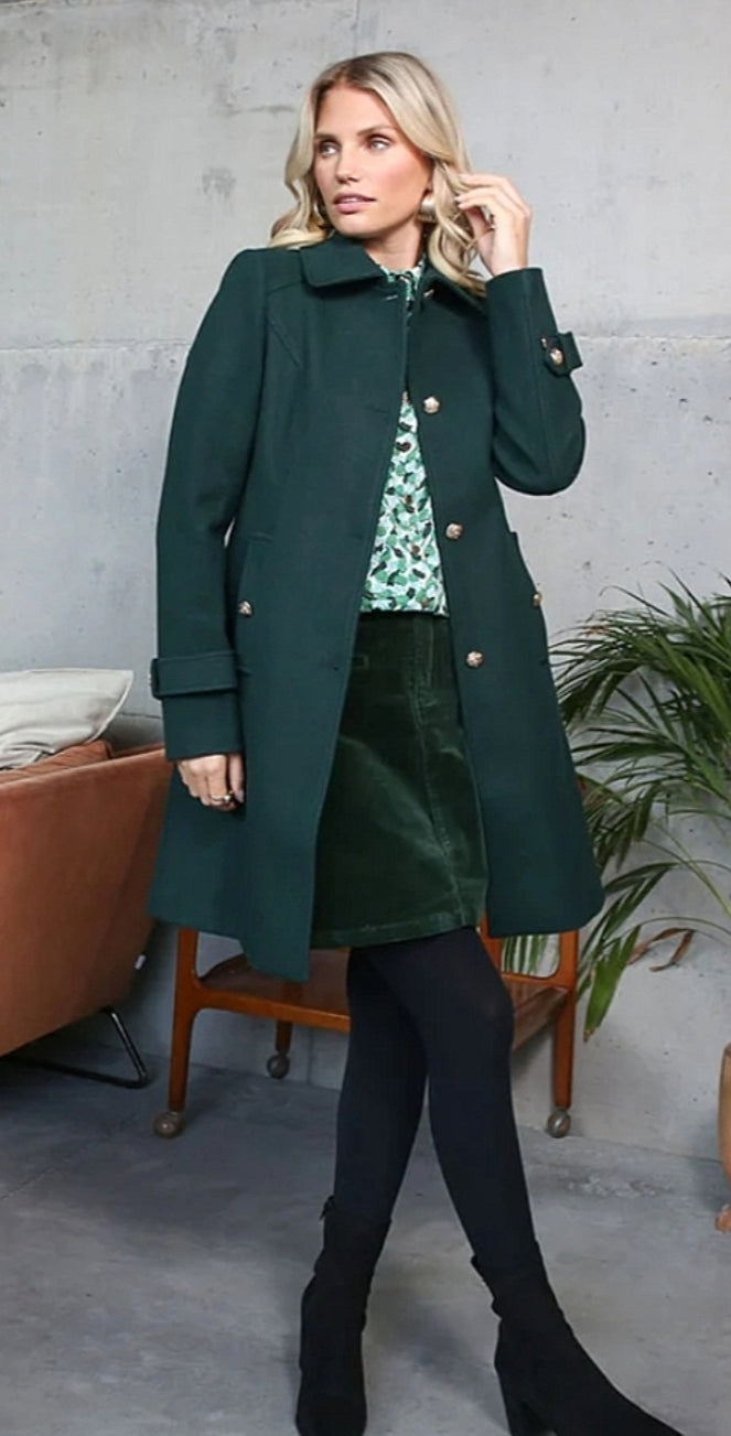 Ladies button front Kyrie Coat by Kate & Pippa in green