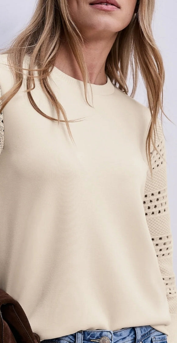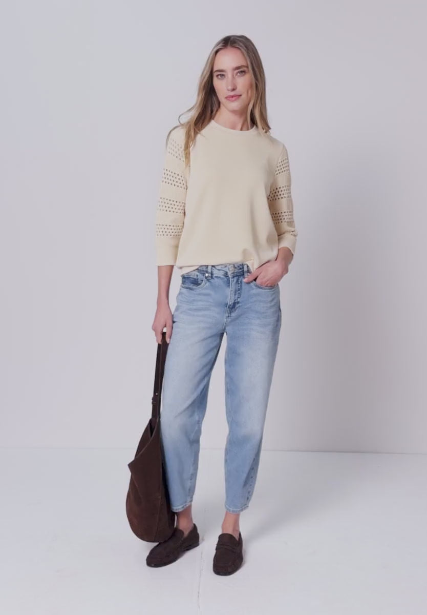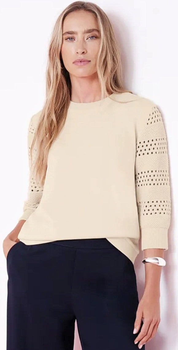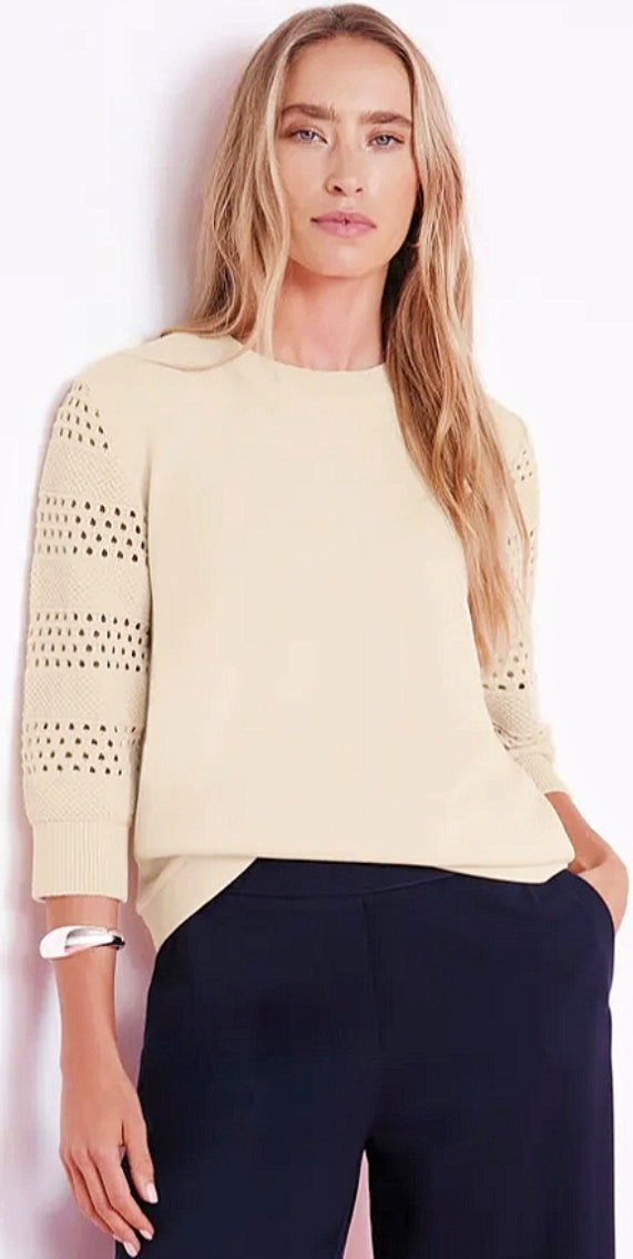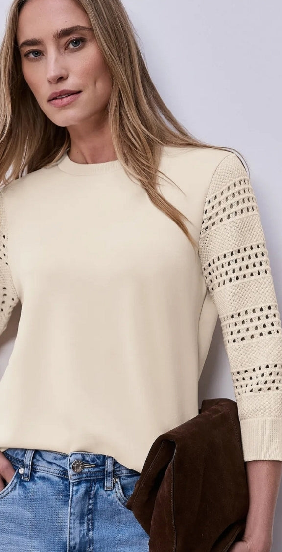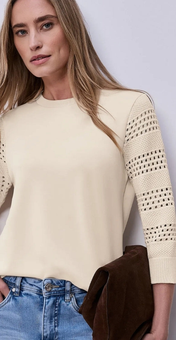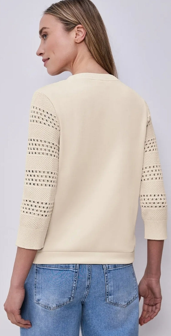 Ladies 3/4 sleeve fine knit sweater by Street One in smoke beige