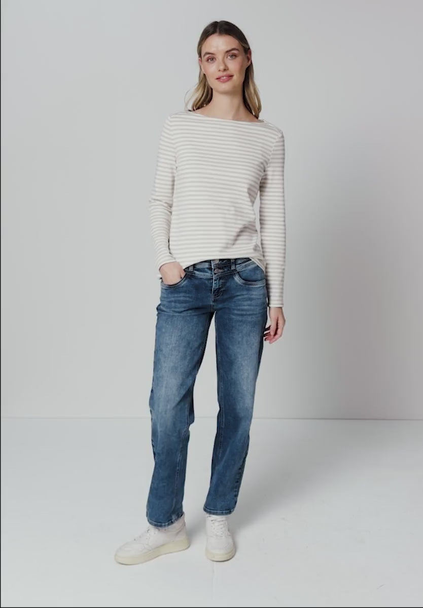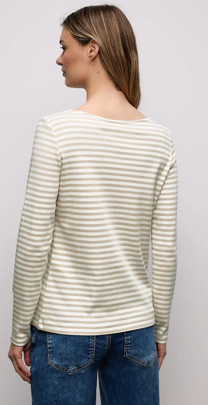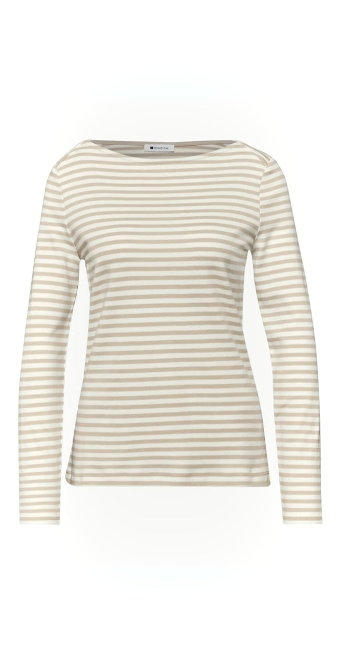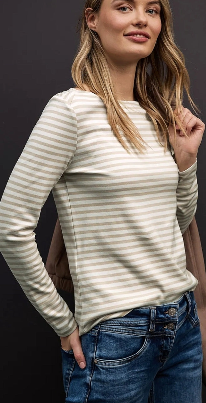 Ladies pin striped basic top in beige by Street One