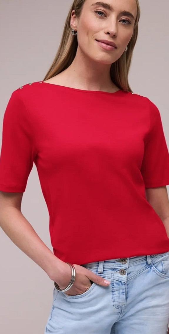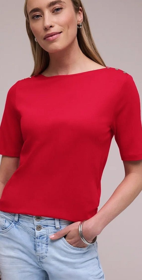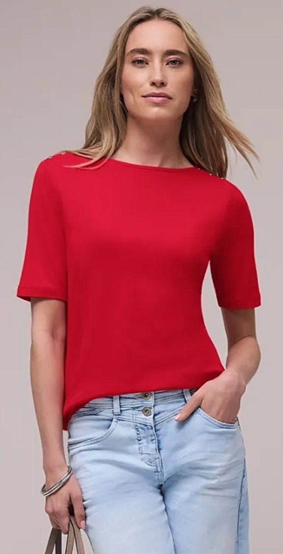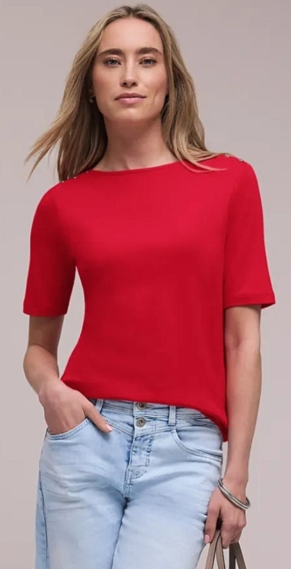 Ladies short sleeve basic top by Street One in red