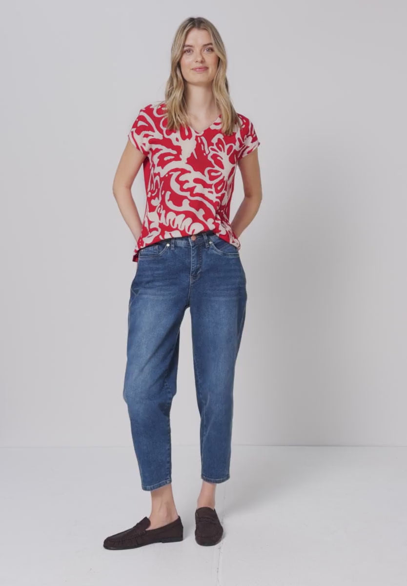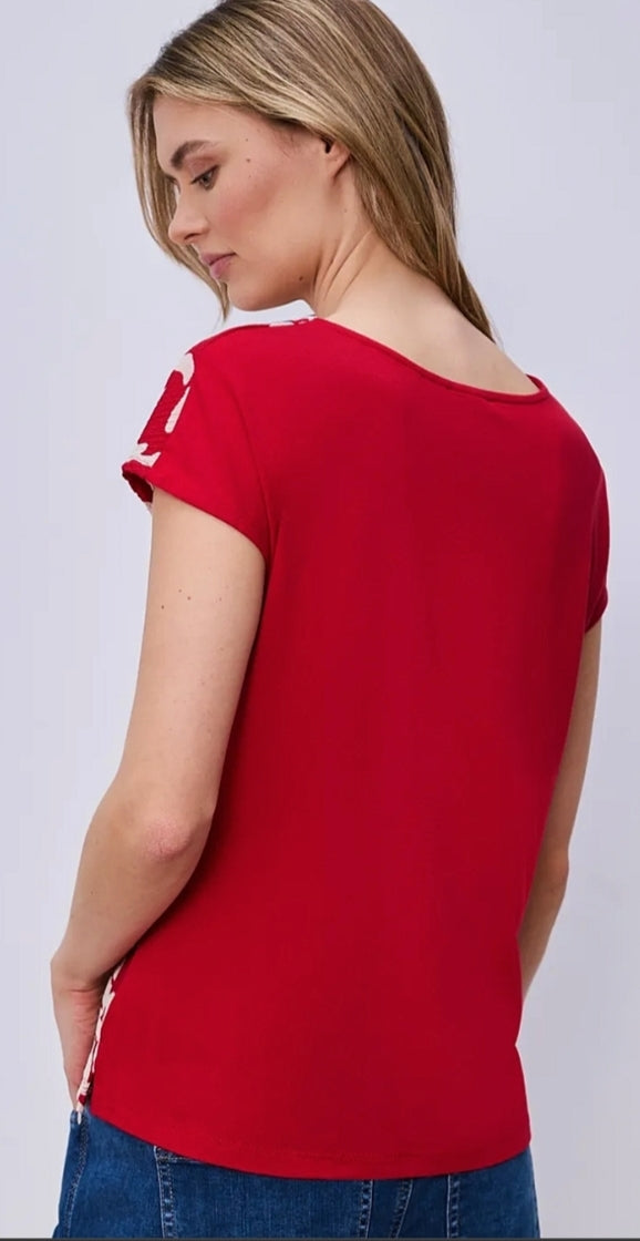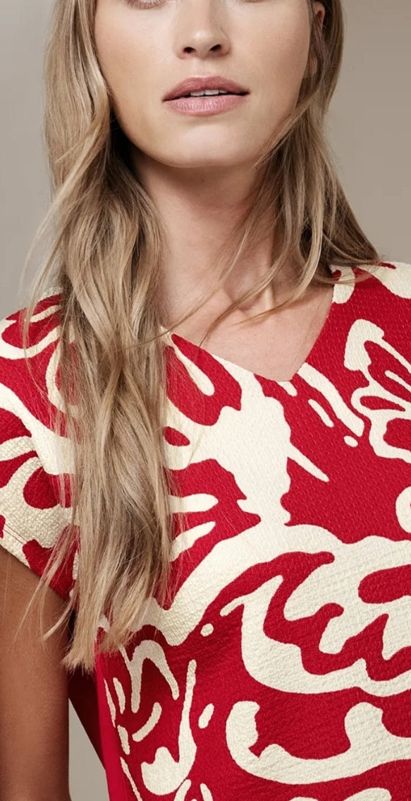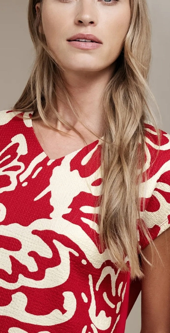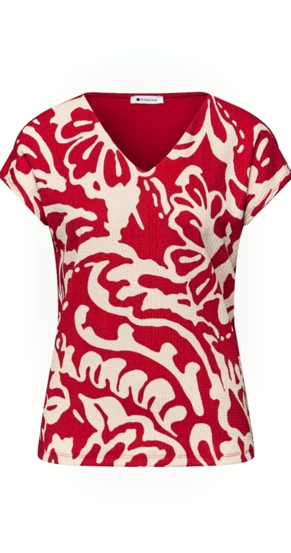 Ladies V.neck printed top by Street One in red