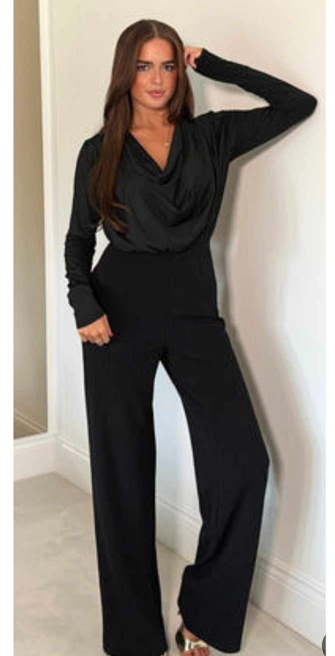 Ladies Elegant long sleeve Cowl neck jumpsuit in black