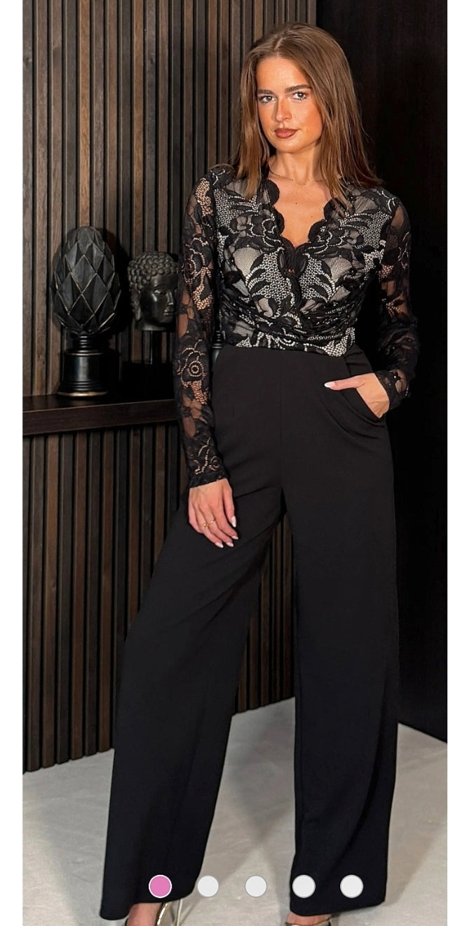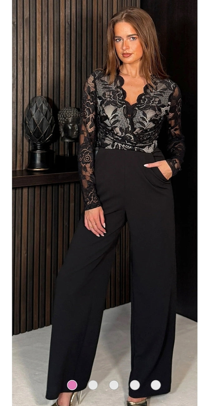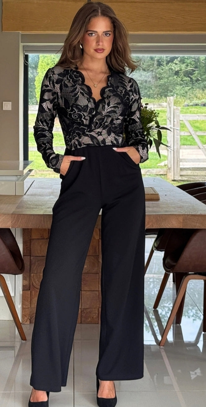 Ladies Elegant V.neck lace detail jumpsuit in black