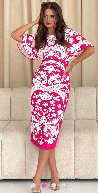 Ladies paisley print midi dress - pink/white